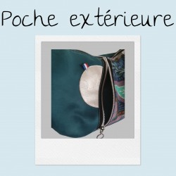 À l’intérieur une poche zippée et deux poches plaquées, une bandoulière réglable.